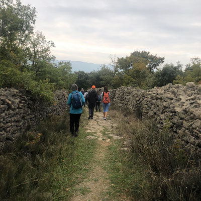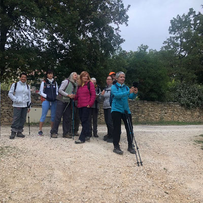 9 randonneuses et 1 randonneur se sont retrouvés vers 9h au niveau de la place de la Mairie de Viens et sont partis, emmenés par Josiane, vers le Sud du village.